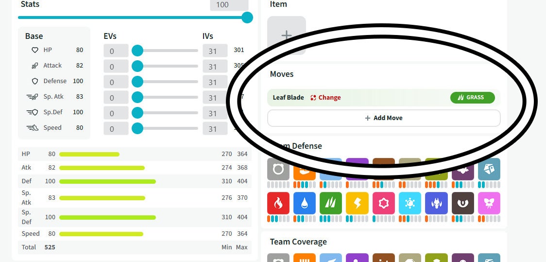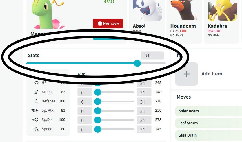 After selecting all of the Pokémon you either have or want in your team, it's time to start filling in the details for each one. This includes adding their moves, stats and any item they might be holding. Let's start with stats.