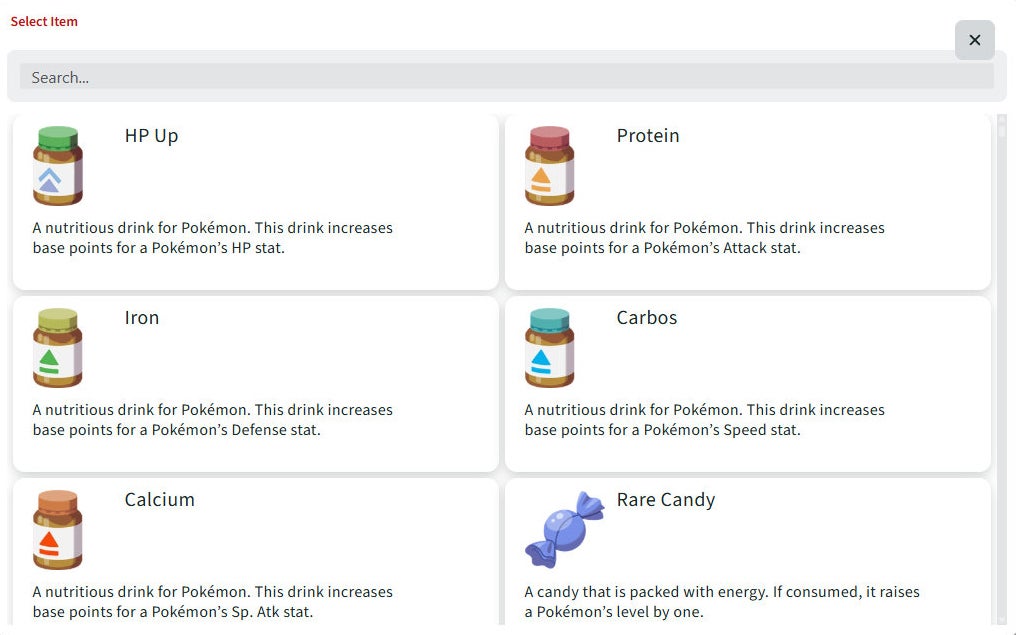Once you've found the correct item, simply click on it and it shall be added to your Pokémon!