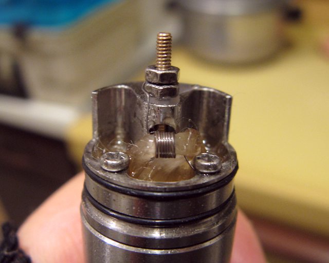 After attaching to atty, get coils red hot then release button, immediately take a set of needle nose and squeeze them together being careful not to overlap any of the wraps... tada!Wish the top coil would have came out as mice as the bottom. I squeezed it about 10 times it just would not come together. It capes well though, so I wasn't going to wrap a new set.![]()