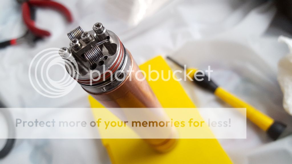 ... Now the good stuff lol 26g 5 wraps quad vertical coils, 2.4mm in diameter & it came out to .18ohms