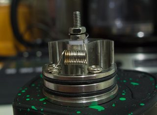 I'm still not sure about this atty. The airflow is just right in that range that is to loose for my prefered MTL (which is OG Kayfun Lite almost completely closed off or Berzerker on the smallest whole ... aka tighter than a gnats ass) and to tight for a nice big DL ( I Like a slightly restricted hit i.e. LiT, Rebirth, DPRO). I spent some time in this range, on my G2, and I remember enjoying it. I may put some time in on this thing and see if I can remember how to vape like this lol. Probably drop to 30g cores and Ni80 wrap to cool it down some first.Wanted to throw something on my squonker ... decided to give the Pixie another round since I only ever used it a couple of times.