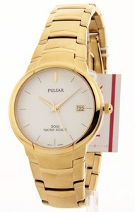 PXH740 Mens Pulsar Gold Tone Stainless Steel Date New Elegant Watch