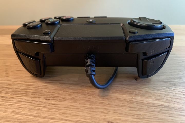 Aside from having some of the same buttons, the Raion does not look like a PS4 controller. Its shape is wider, boxier, and almost flat. There is much more space on its face: The analog sticks and the round wells that house them are gone. It makes the PS button look positively tiny surrounded by empty space. Holding it, the grips flow into the back of the gamepad, similar to an Xbox One controller. I found it very comfortable to hold, and it provided good grip even as your right thumb makes larger and wider motions to reach all six face buttons. The larger, flatter surface makes room for a few more and bigger buttons. On the left side, you have a large, clicky D-Pad more or less in the same position as the DS4’s. The D-Pad is a single piece that pushes in eight directions, similar to an 8-way joystick. It’s as good as you can get on a D-Pad, allowing for easy Street Fighter-style quarter- and half-circle motions. It still doesn’t feel quite as natural as performing the motions on a joystick though. On the right side, you now have six large face buttons – the four classic PlayStation face buttons plus R1 and R2. Like arcade buttons, they have no click or mush, and have a very light press, allowing you to tap them very fast. Despite this, the Raion has four triggers, though they aren’t meant to be used that way. All four top buttons are flat, and have a mouse-like clickiness to them, creating a low-travel approximation of an arcade button. Since you have two face buttons for R1 and R2, but no analog sticks, you have the ability to switch the trigger inputs from the standard format to L3 and R3 on the left side and L1 and L2 on the right using a switch at the bottom of the controller. Why did they choose to move L1 and L2 instead of just putting L3 and R3 on the right? I have no idea. It isn’t going to get in the way for any competitive games, though, as the analog buttons tend to only come into play for more complex modes. The center column still has the central PS4 components. The share and options buttons are round and circular. There’s a touchpad, which looks small, but is actually about the same size as the original. Razer moved the PS button up to just below the touchpad because the Raion does not have an internal speaker. Below that, there are a pair of buttons – one mutes your mic, the other is one-button volume control. Press together, they also enable tournament mode, which turns off the menu or system-level buttons.