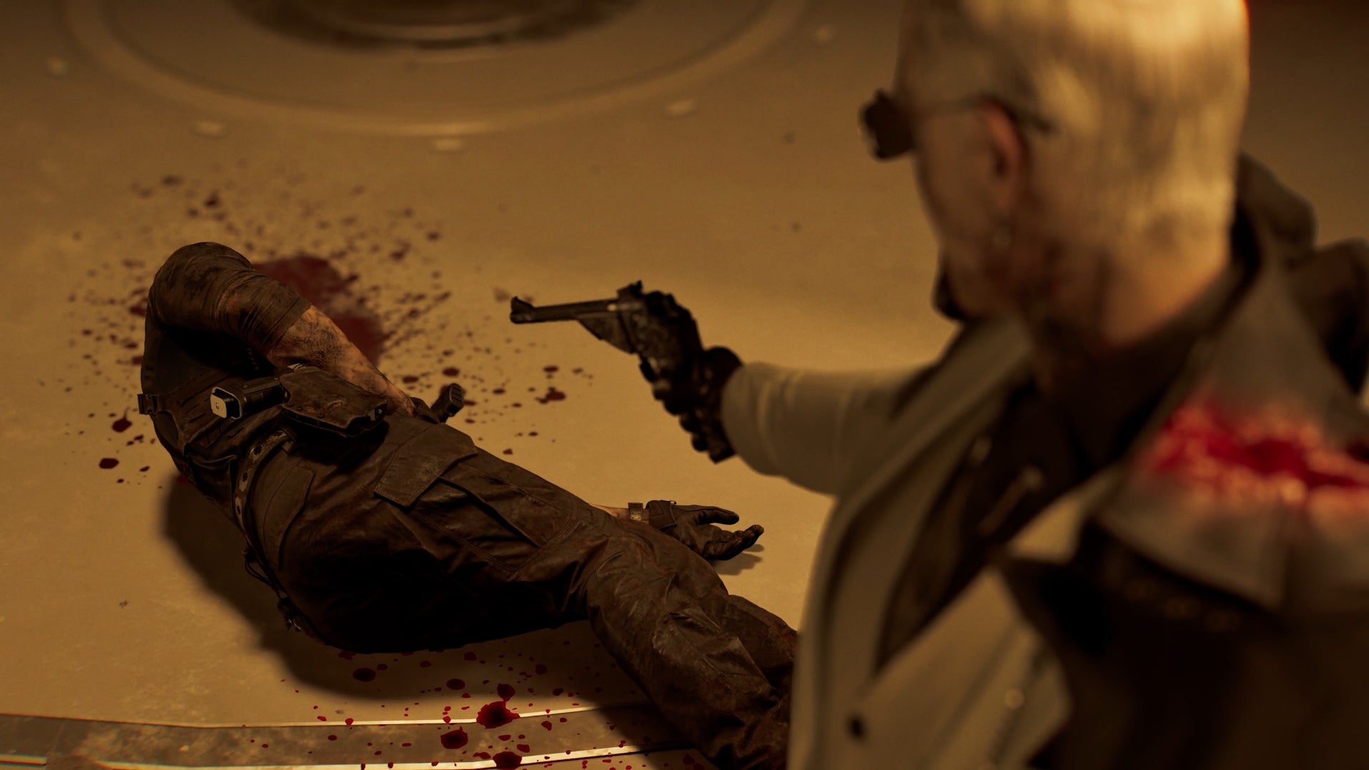 When Grace releases the antiviral, it initially seems like a great result for Zeno – a lightning-fast, sunglasses-wearing, slick haired villain who isn’t actually Wesker, despite all appearances. He believes Elpis is the key to ultimate control, and so swiftly injects it. Unlucky for him, the fast-acting serum quickly cures his existing infections, erasing his Wesker mojo and robbing him of the ability to dodge bullets.