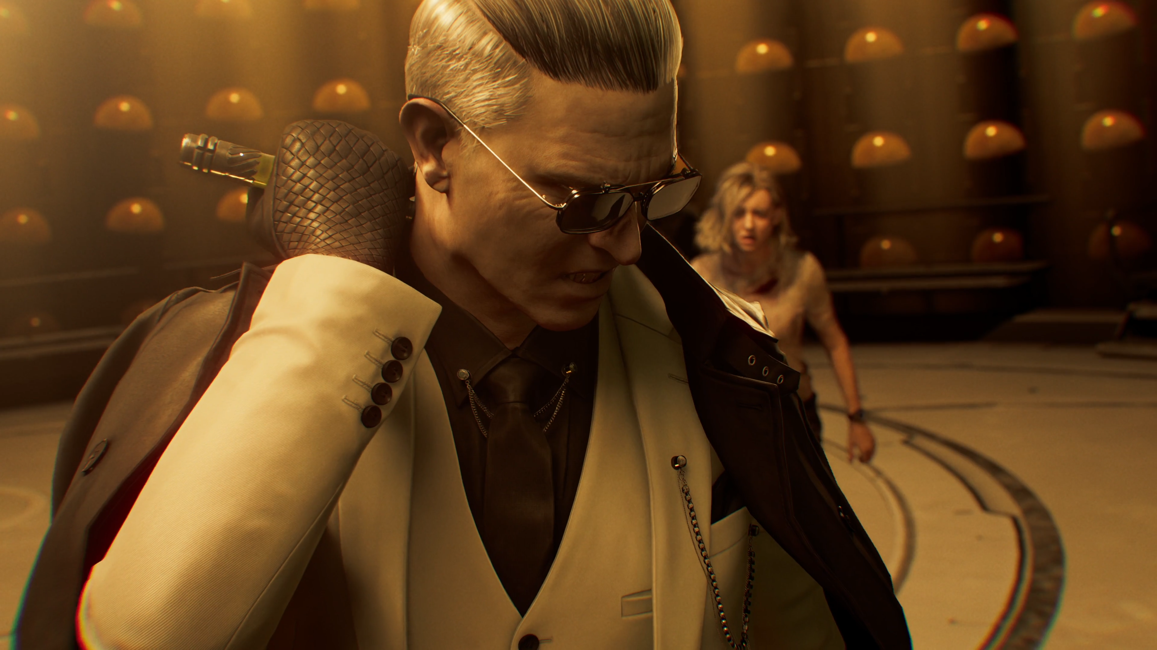 Two of the company’s co-founders, Ozwell E. Spencer and James Marcus, were ideologically opposed, which caused a number of issues in the direction of Umbrella’s research. While Spencer eventually demoted Marcus, things were already too far gone. The Connections, the shadowy group who Zeno works for, had been funneling funds to Marcus for years, while also placing moles within the company. By the 1990s, Spencer had lost much of his control of Umbrella, and had retreated to ARK to develop Elpis.