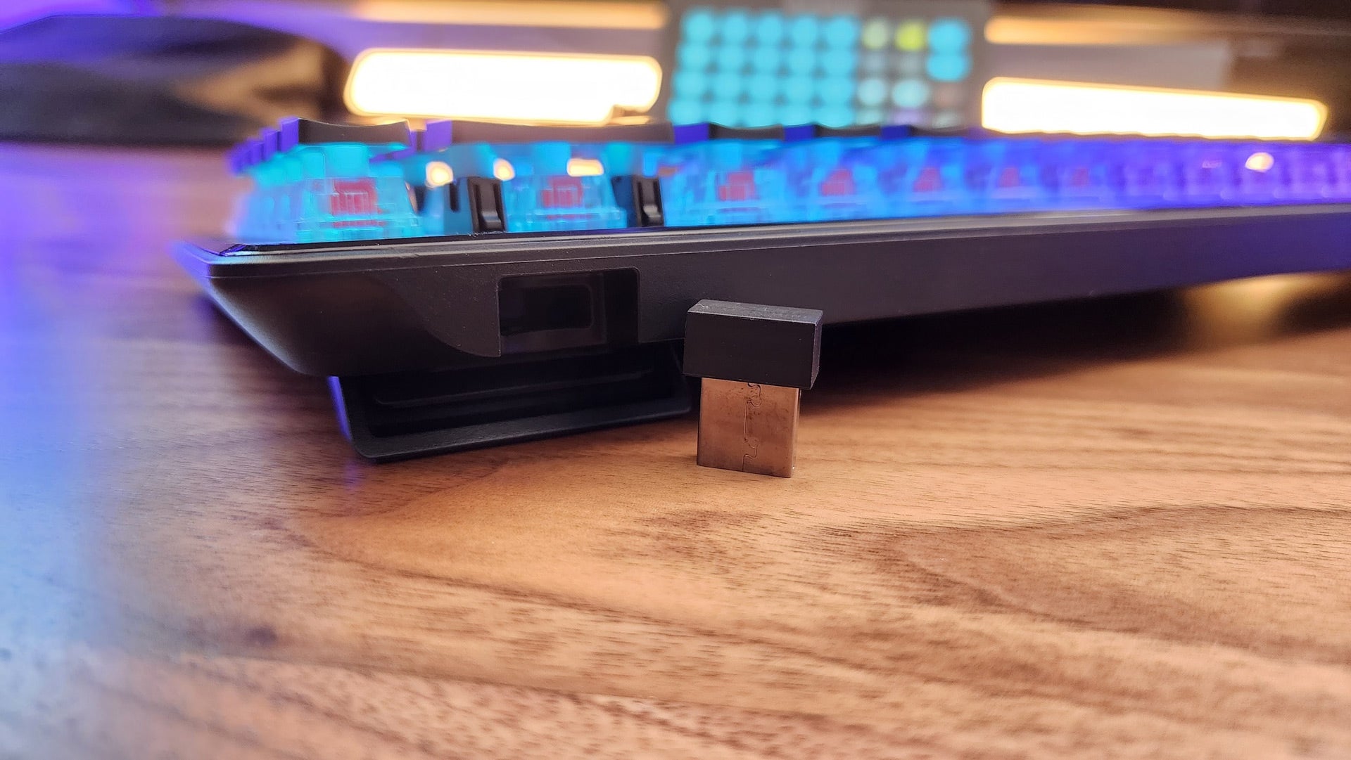 The keyboard is definitely going after the same space as Corsair, SteelSeries, and Razer with its compact design, and it does a good job of going toe-to-toe in connectivity and features. It offers the full suite of connectivity options, including high-speed 2.4GHz, Bluetooth 5.2 with up to three devices, and wired using its detachable USB-C cable. You can swap between four total wireless devices on the fly and it’s relatively seamless to switch between them. There’s no option to exceed a 1,000Hz (1ms) polling rate like the Corsair K70 Pro Wireless, but whether there’s even a real-world benefit to such high polling rates on gaming keyboards is questionable at best.