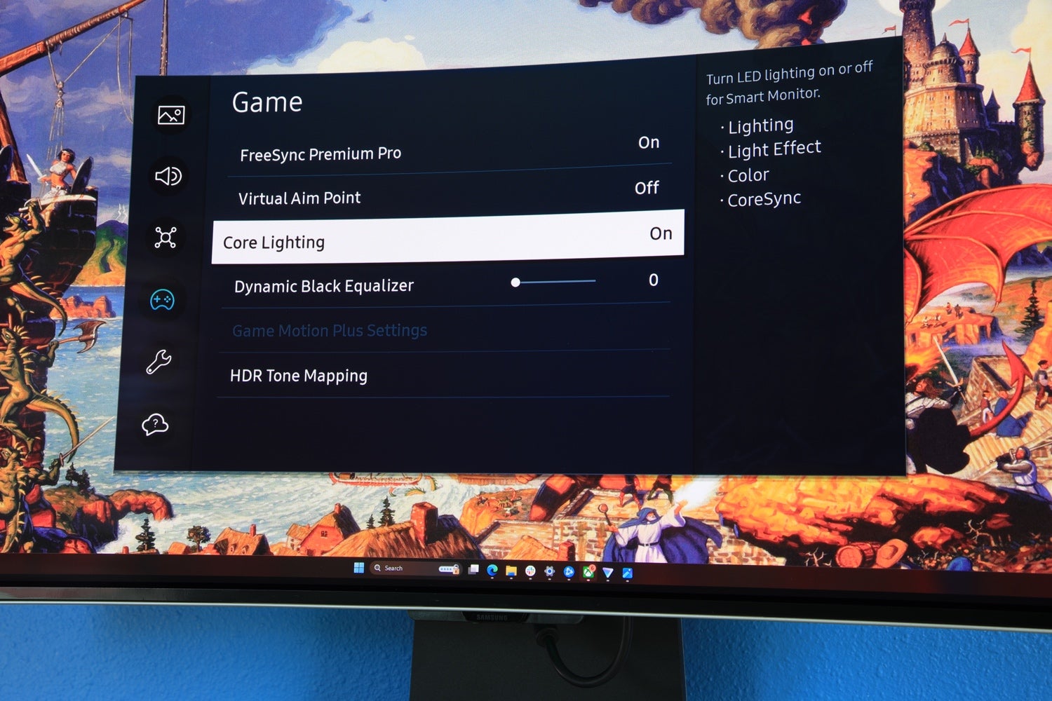 Sharpness is the monitor’s most serious limitation in day-to-day use. Samsung’s QD-OLED panel doesn’t use the RGB subpixel layout that Windows expects, which can lead to problems when viewing fine fonts or high-resolution images. Details can appear more pixelated than expected and the space between small characters can display a color, such as yellow or blue, that shouldn’t be present.