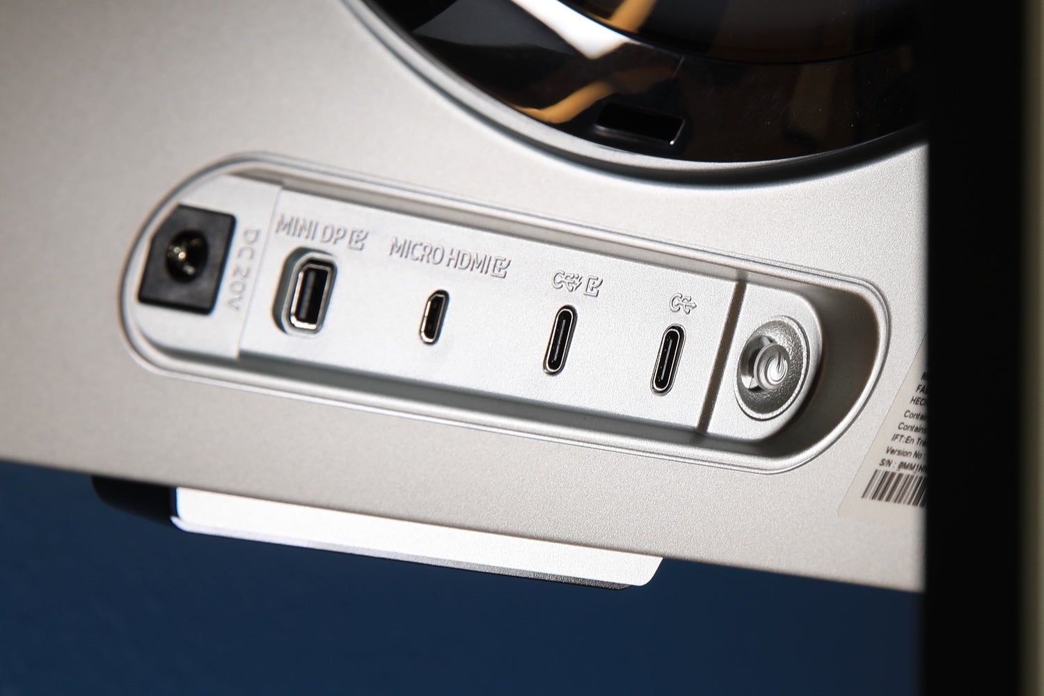 Samsung offers unorthodox connectivity that's sure to stir controversy. Gamers won't find a single full-sized DisplayPort or HDMI port on the monitor. It’s instead equipped with one Mini DisplayPort, one Micro-HDMI 2.1, and a pair of USB-C inputs. This is a bit annoying, as standard DisplayPort or HDMI cables won't work without an adapter. My review sample did not come with the proper cable but, from what I’ve read, other reviewers received a DisplayPort to Mini-DisplayPort cable. A DisplayPort to Mini-DisplayPort adapter or cable will run around $10, while HDMI 2.1 to Micro-HDMI 2.1 cables are usually $15.