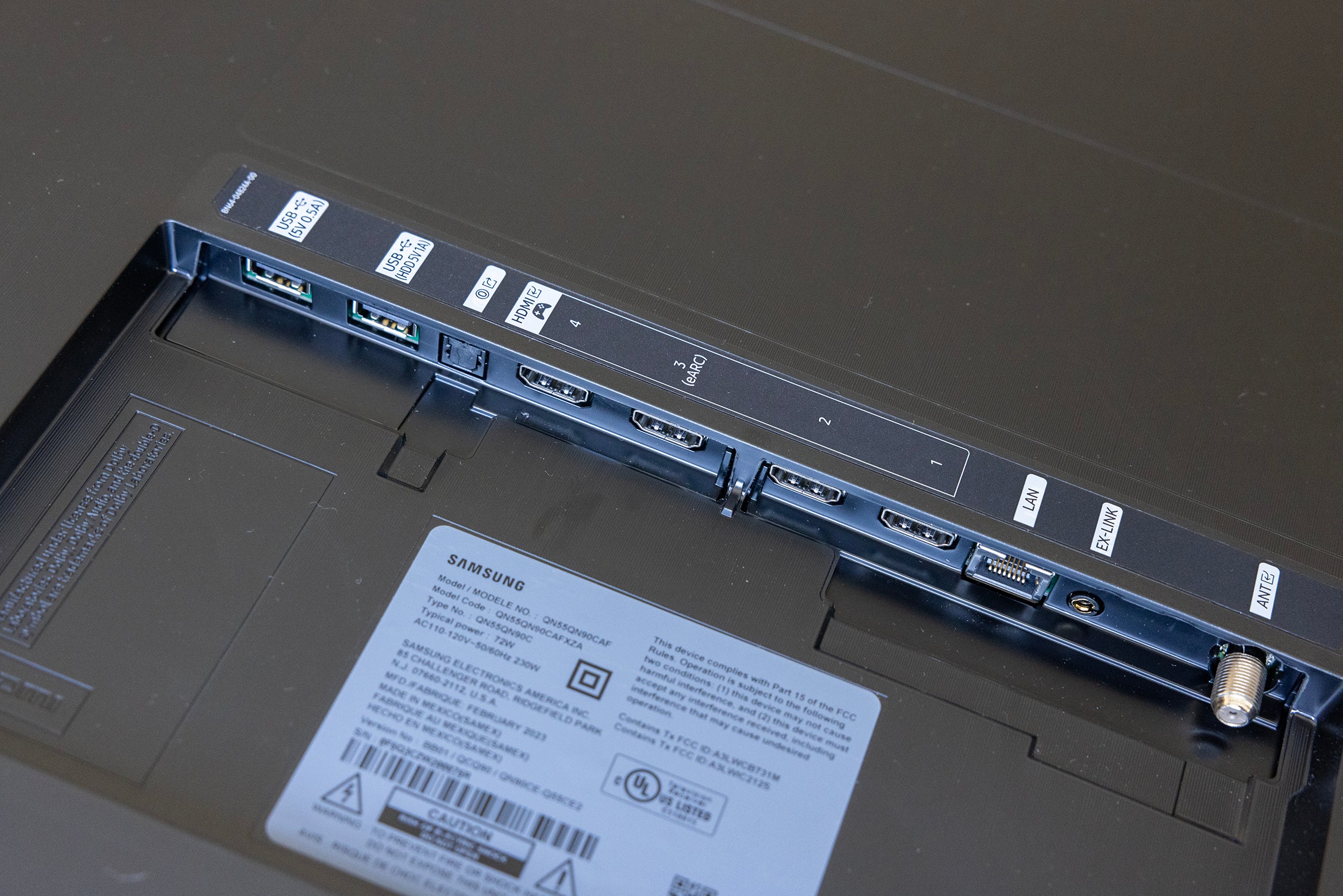 The QN90C has four HDMI ports (one eARC) and all of them are rated as HDMI 2.1, which theoretically means that it doesn’t matter which one of these you use for your console and provides enough connectivity for multiple high bandwidth connections. There is no 3.5mm headphone port, so audio will have to be managed via the eARC HDMI port, via Bluetooth, or through an optical connection. The QN90C also has two USB ports, of course supports WiFi, and has an Ethernet port as well.