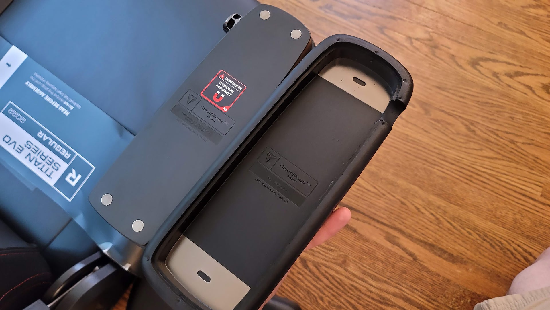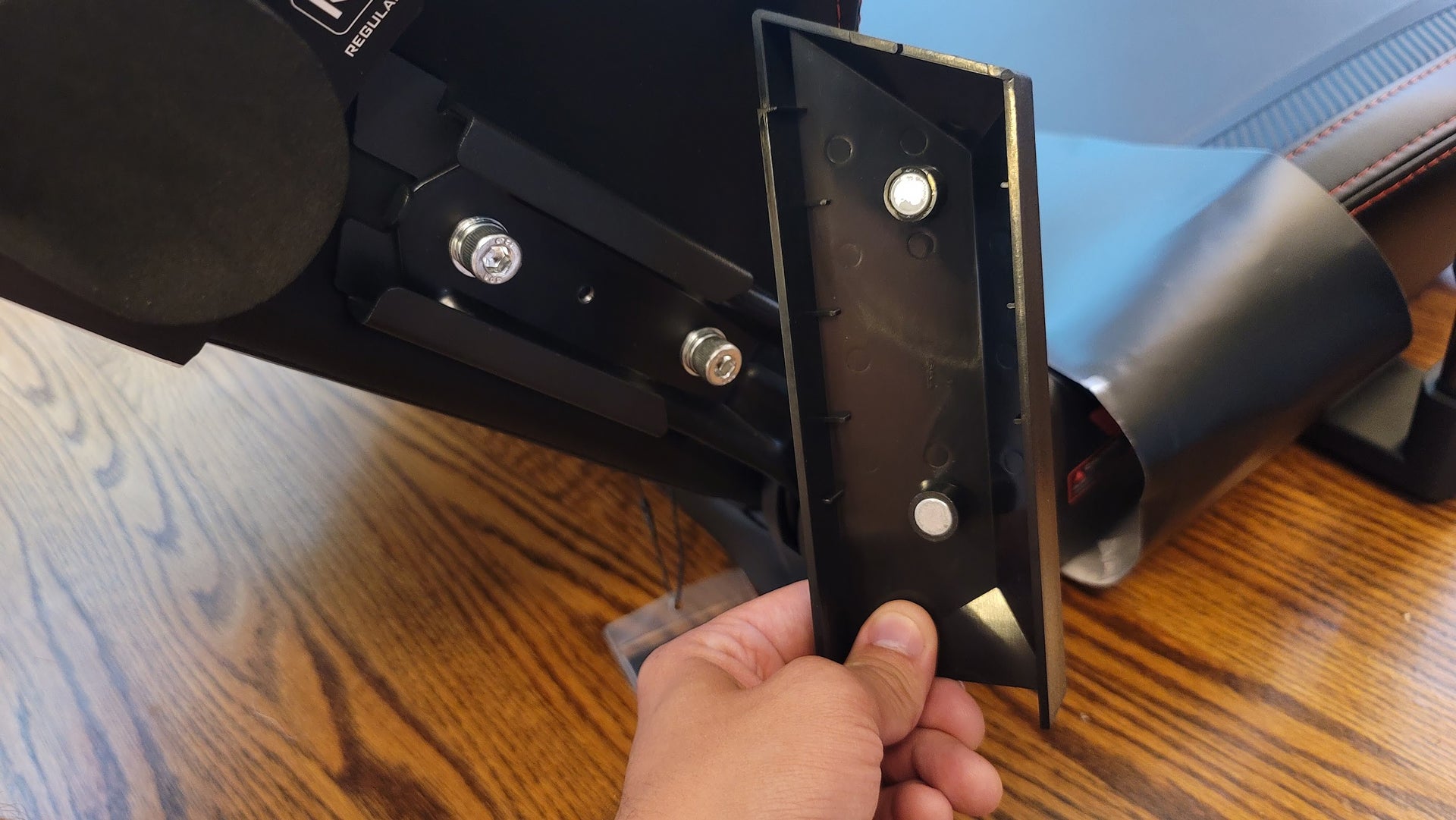 When that’s done, there’s no screwing in the plastic cover either. Instead, you guessed it: magnets. Two magnets hold the cover in place. Taking them off again is easier, so when I had to take the back off to move the chair upstairs to my office, transport and re-assembly took less time too.