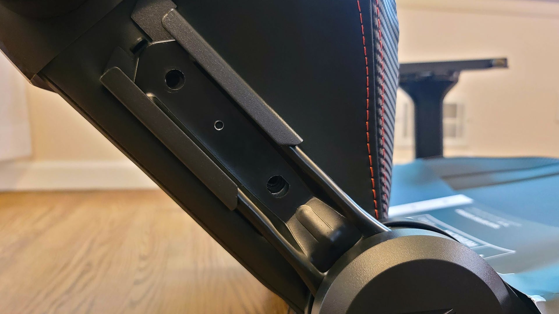 The entire build process took about 20 minutes, stopping to take pictures in between each step, and was easier than most other gaming chairs. The armrests came pre-attached, which saved a few minutes, but the biggest improvement came with attaching the backrest. On most gaming chairs, this involves getting on the floor and holding the whole backrest at the perfect angle to attach each fastener. Frankly, it’s a giant pain. The Evo solves that in a way that’s so simple it makes you wonder why no one has done it yet: a metal bracket. You simply slide the backrest into place and tighten the screws. Oddly, this is only on one side, so there’s still some adjustment to be done, but it’s a far cry from most gaming chairs.