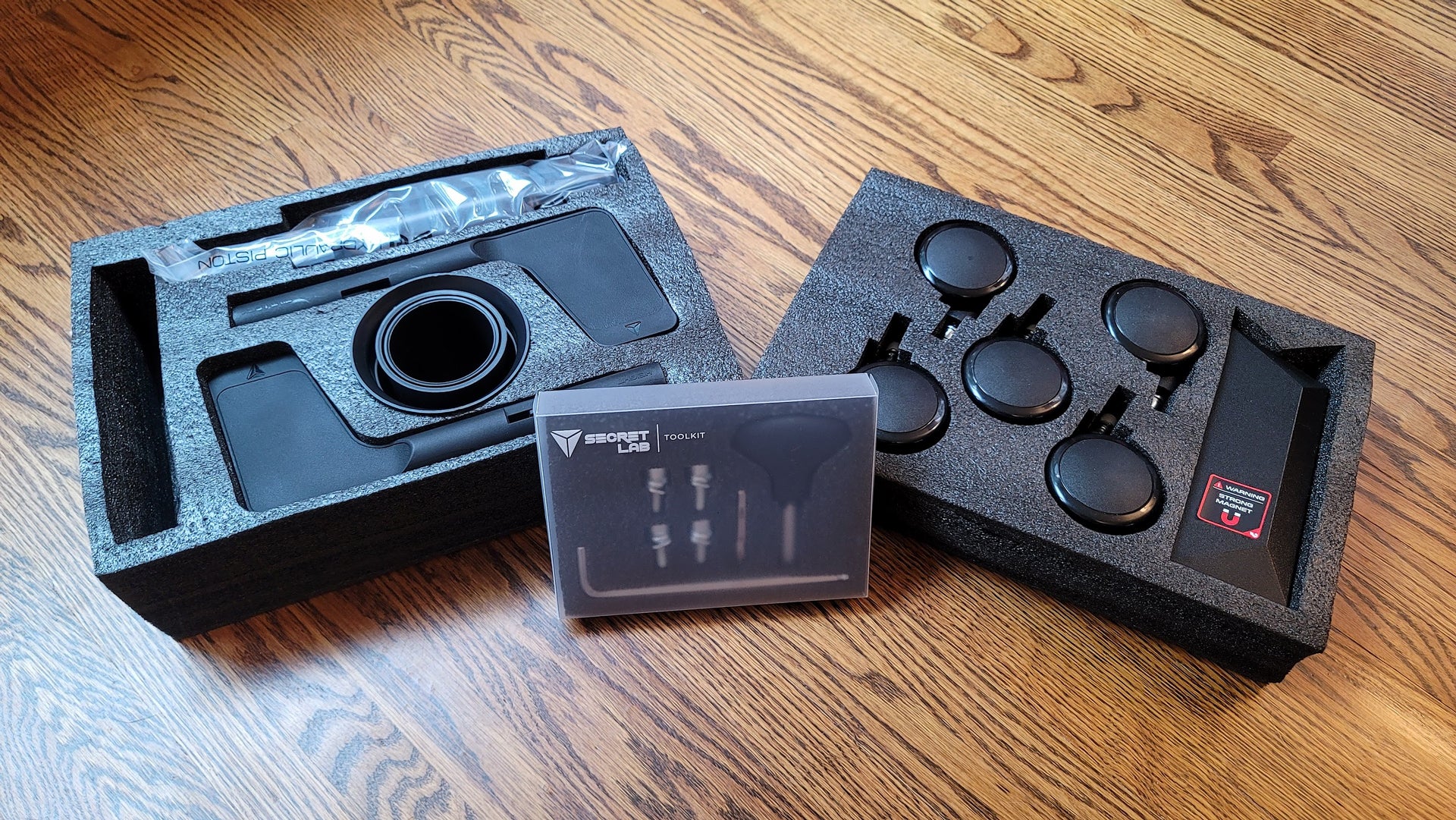 With everything unboxed, it looks fairly compact. Secretlab includes everything you’ll need to assemble the chair inside the accessories box, including a handy screwdriver tool with a swappable tip for the two kinds of fasteners required for the build, as well as a long hex key for when you need extra leverage. The screwdriver was a timesaver, allowing me to quickly change bits when needed.