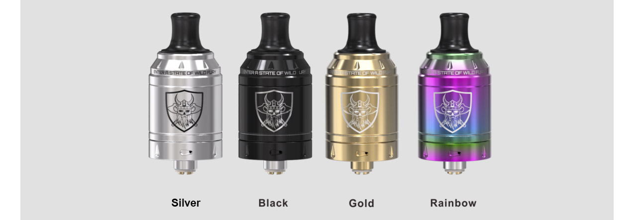 Vape Berserker Mini MTL RTA designed by Alex from VapersMD. Comes with three tubes, the colorful Stainless Steel tube, ultem tube and glass tube. Berserker Mini MTL RTA features 2ml capacity with top filling.
