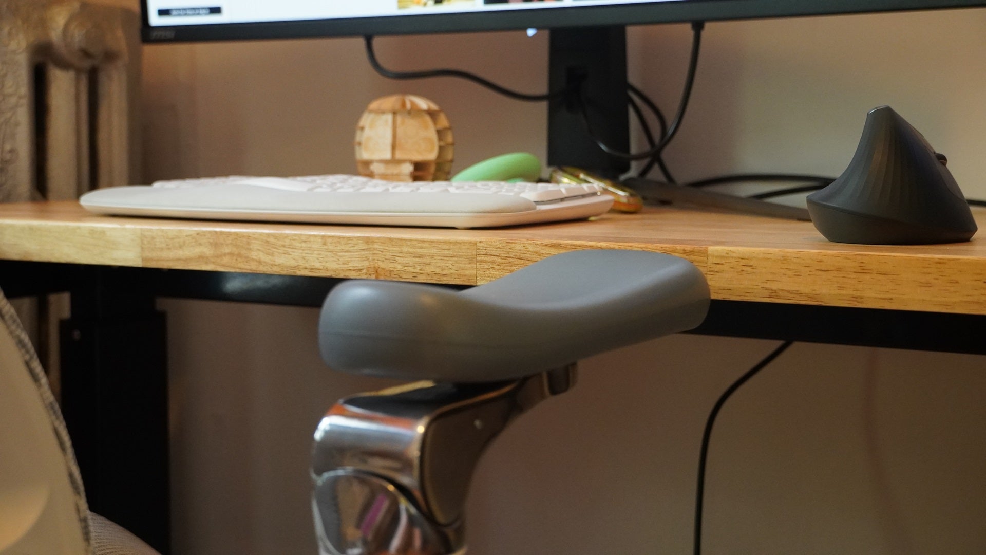 The armrests themselves have curving tops, which can work to support more of your arm if they’re positioned correctly, but it’s just as easy to end up with this support working against you. I often find I end up with my elbow jabbed by the back end of the armrests or end up with just the front of the cushion supporting my forearm, where its smaller contact patch puts a lot of pressure on the muscle. As good as these armrests can be in a static position that’s been carefully arranged, they can struggle to keep up with shifting postures and positions, and their extra ergonomics become hindrances if you’re not willing to dial them in just right after every move you make. Perhaps that explains why the Steelcase Gesture, for example, opted for flatter armrests.