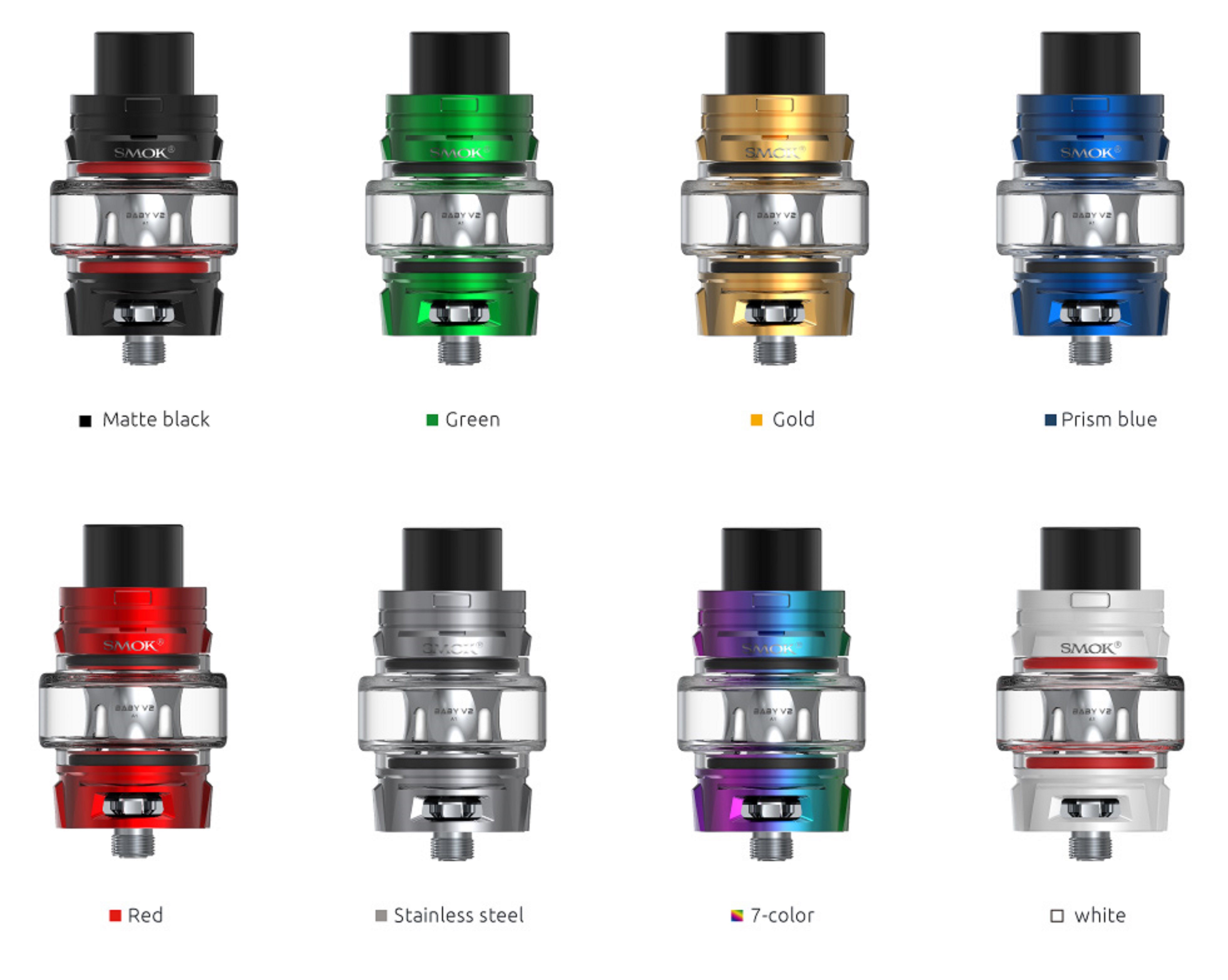 The TFV8 Baby V2 is the long awaited update to the TFV8 Baby that seems to of been around forever. I am not going to go into great detail as the TFV8 Baby has been reviewed so many times i really only see it necessary to point out the changes to the tank. The top of the tank has had a lot of work done to it with a lock mechanism added like we have on the prince, the seal has also been moved to the underside of the top-cap and the fill port is far bigger, so far so good. At the bottom of the tank we now have tri airflow slots and they are very wide, the protruding 510 is Gold plated and non adjustable. The tank is short in comparison to it's diameter which allows for a straight glass making the capacity TPD compliant, it also means the bulge glass that takes the standard version to 5ml bulges out quite far, i actually like the look. I am not a fan of the drip tip, it's a sleeve that fits over the central protruding section on top of the tank, this section has o-rings to secure the sleeve. The drip tip is comfortable enough but i like the option of using my own which isn't possible. The two coils included with the kit are both mesh coils, they are the Baby V2 A1 0.17-ohm Single Mesh Coil rated at between 90w and 140w with best between 110w and 130w, the other coil is the Baby V2 A2 0.2-ohm Dual Mesh Coil which is rated between 70w and 120w with a best between 85w and 105w.