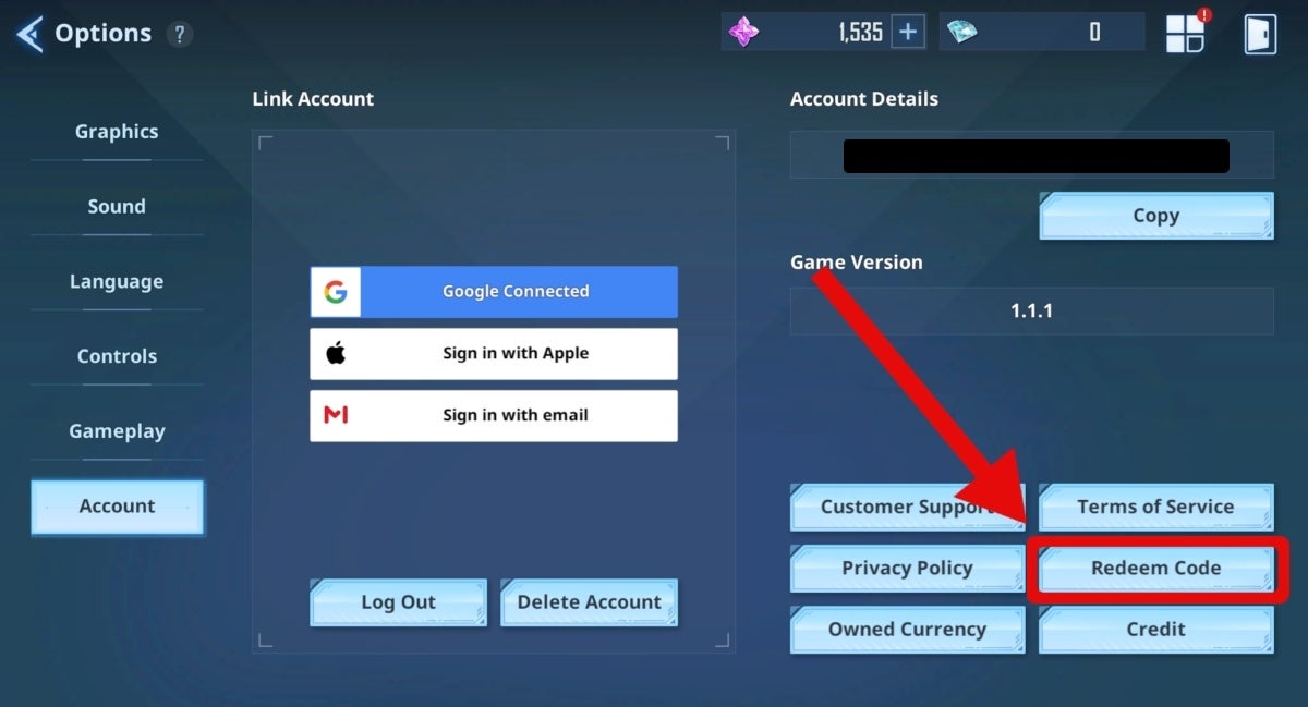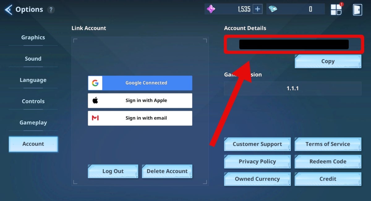 If you're on iOS or are generally having trouble with redeeming codes in-game, we'll need to do something slightly different. First, we'll want to open the sidebar tab, head to the settings menu, and then select the Account Tab. From here, look for the Account Details number in the top right-hand corner of the tab. Copy the number and then head to the Solo Leveling: Arise forum's Redeem Code page.