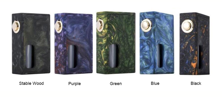 Stentorian RAM BF MOD is an elegant wood/resin style Squonker device with a bottom feeding design. Powered by a single 18650 cell, plus a 7ml huge squonk bottle, the RAM BF MOD offers a full day vaping without frequent refilling. It has a fire button with a safety lock to prevent accidental firing too. The 24K gold 510 connector and fire button ensure the best electronic conductivity too. The Stentorian RAM works well with 22mm/24mm atomizers in diameter. Available in 4 colors.