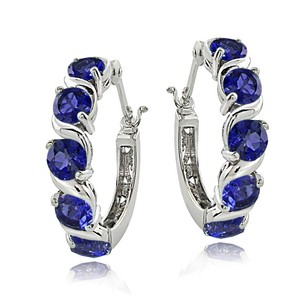 Sterling Silver 2.30ct TGW Created Blue Sapphire S Hoop Earrings