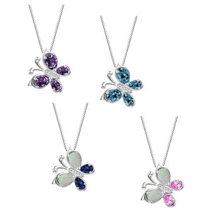 Sterling Silver 925 Gemstone Butterly Pendant with 18" Italian Box Chain