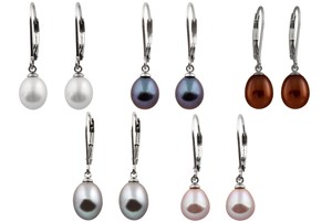 Sterling Silver Rhodium Plated Drop Shape Freshwater Pearl Earrings ESR-19