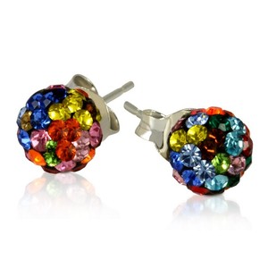 Sterling Silver Stunning Multicolor Pave Crystal Balls Earrings