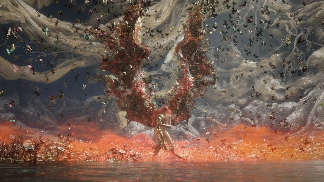 The first is a sword-centered face-off in which the legendary twin of Miquella, who brought Caelid to ruins through an unleashing of scarlet rot, aims to skewer you with her mesmerisingly deadly waterfowl dance maneuver. If you manage to weave yourself in and out of her flurrying swipes you’ll meet her second form: the beautifully destructive Goddess of Rot persona that unleashes sparkling red plumes that eat at your health bar. Malenia’s a mighty challenge to take down, but also a boss fight filled with visual spectacle and rooted in a deep story attached to the shattering of Elden Ring’s world.