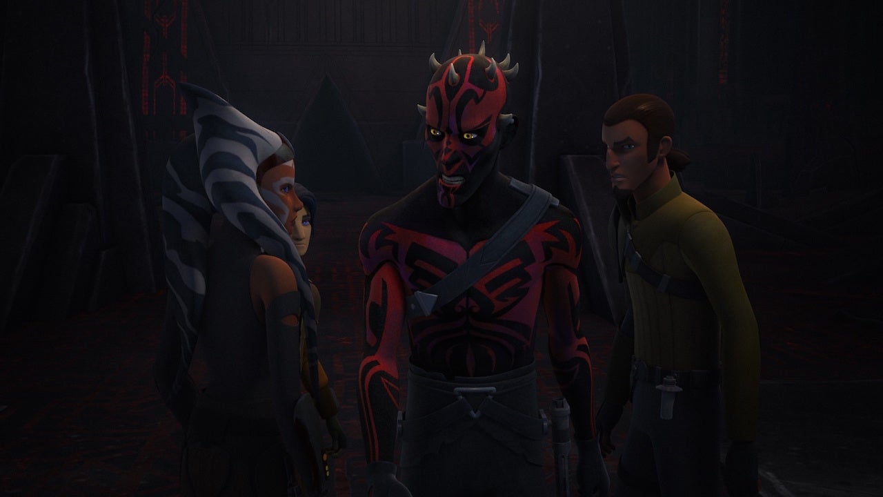 While the final season of The Clone Wars wraps up Maul's Prequel-era story, we've already seen where his journey takes him closer to the Original Trilogy era. Maul appears in several episodes of Star Wars Rebels, a series which focuses on a plucky band of Rebels lighting the way in a time before Luke Skywalker and Han Solo started hogging all the glory. Ahsoka also plays a big role in the series, making it a true successor to The Clone Wars. Maul first appears in the two-part Season 2 finale, "Twilight of the Apprentice," where he becomes an unlikely, if temporary, ally to Ahsoka and friends as they travel to the Sith world of Malachor and battle Darth Vader himself. Maul later resurfaces several times during Season 3. The episodes "The Holocrons of Fate" and "Visions and Voices" deal with Maul's growing interest in budding Jedi Ezra Bridger.