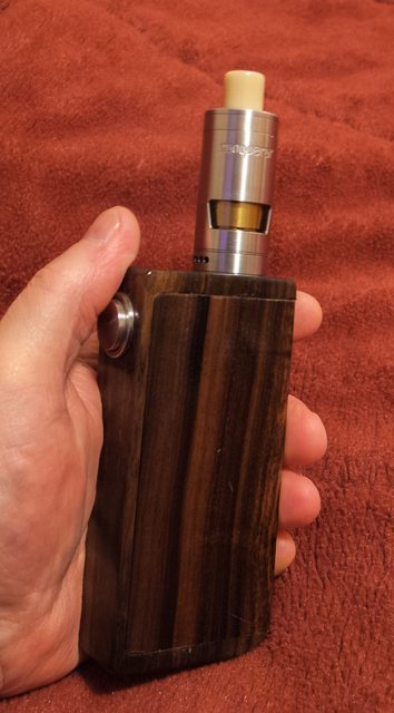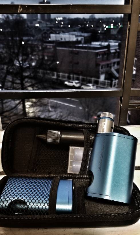 It's the Lost Vape Drone 250C, which I had pre-ordered back in November from vapetime.co.uk. Sitting on top is the Modfather RDA, which I can't remember where or from whom I bought it. Super smooth airflow