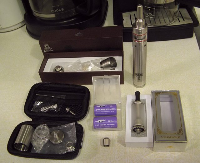 My newest acquisition is a Lemo Drop. Perfect match for my new Sigelei 30w Mini. Still using the stock coil, but the stock wick popped like crazy. Some new cotton has fixed it completely. I wish I could access the deck without draining the tank but for the price I cant complain a bit. Next week after payday I'll pick up a new 18650 and a charger and then I think I can quit buying for a while. Except juice of course...