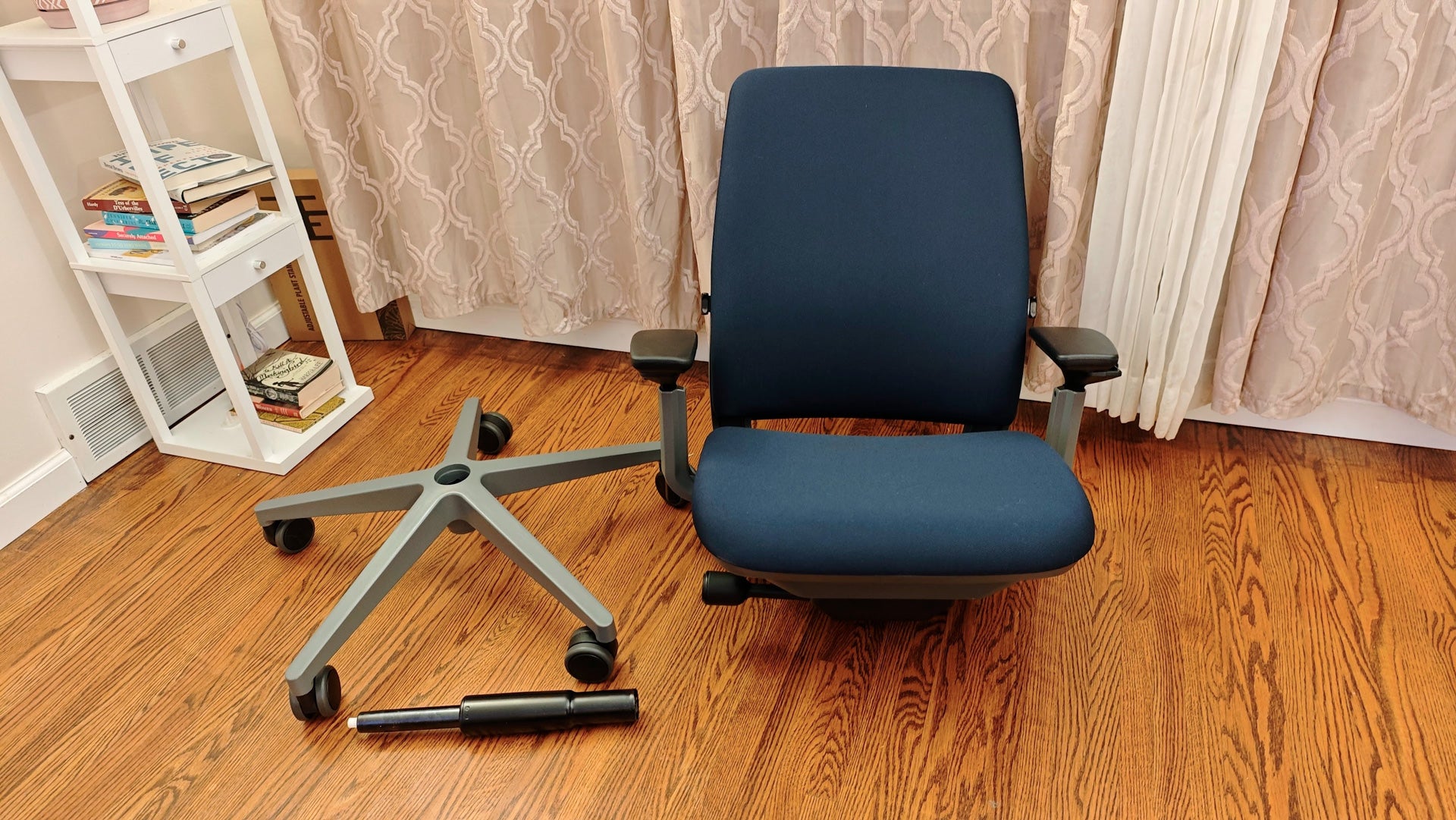 Assembling the chair is fairly streamlined. The seat comes pre-assembled, so the only thing you have to do is place the gas piston in the wheelbase and set the chair on top of it. A single person can do this within five minutes after it’s unboxed.