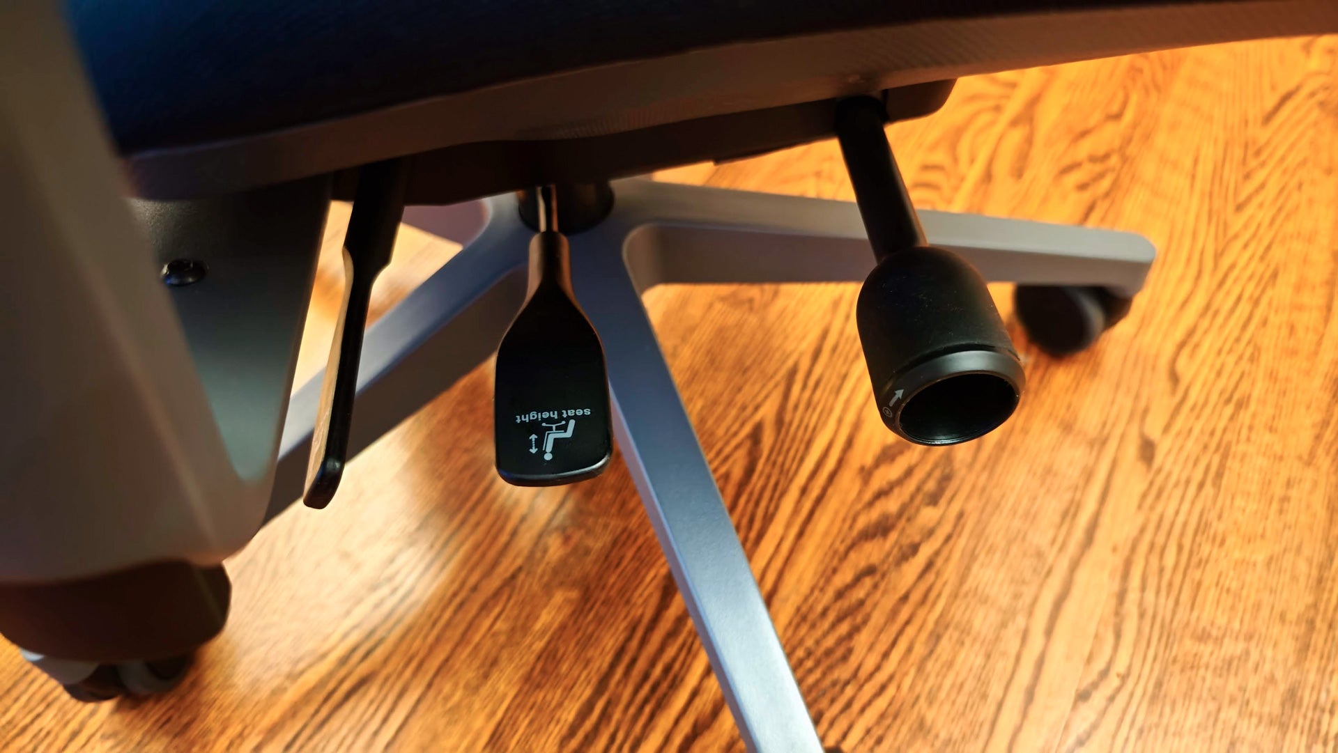 Beneath the chair, you’ll find its other adjustments. Each is clearly labeled and easy to access from the seat. You can adjust the height, raising the chair from 16 to 21 inches, and adjust tilt tension from completely loose to locking it upright but there are no lockable steps. The seat depth slider is also under the seat while lumbar adjustment is done with the two tabs on the back.