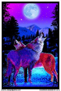 Timberwolves Flocked Blacklight Poster, 23x35 Wolves Moon Night Nature Forest