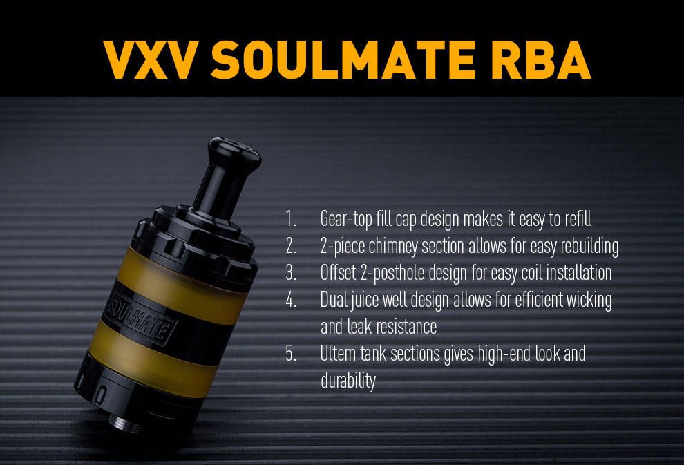 Advken Notch RDA is coming! It is an exquisite and durable rebuildable dripping atomizer with 24mm diameter and knurled top cap. The Advken Notch RDA features dual posts design for easy dual coils building, and it is compatible with