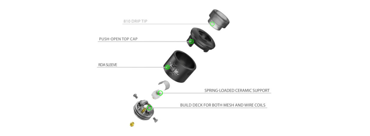 Notch coil and other rebuilding coils. Together with the side and bottom airflow-in-out system, the Notch RDA will bring you excellent vaping experience. The Advken Notch RDA also has a