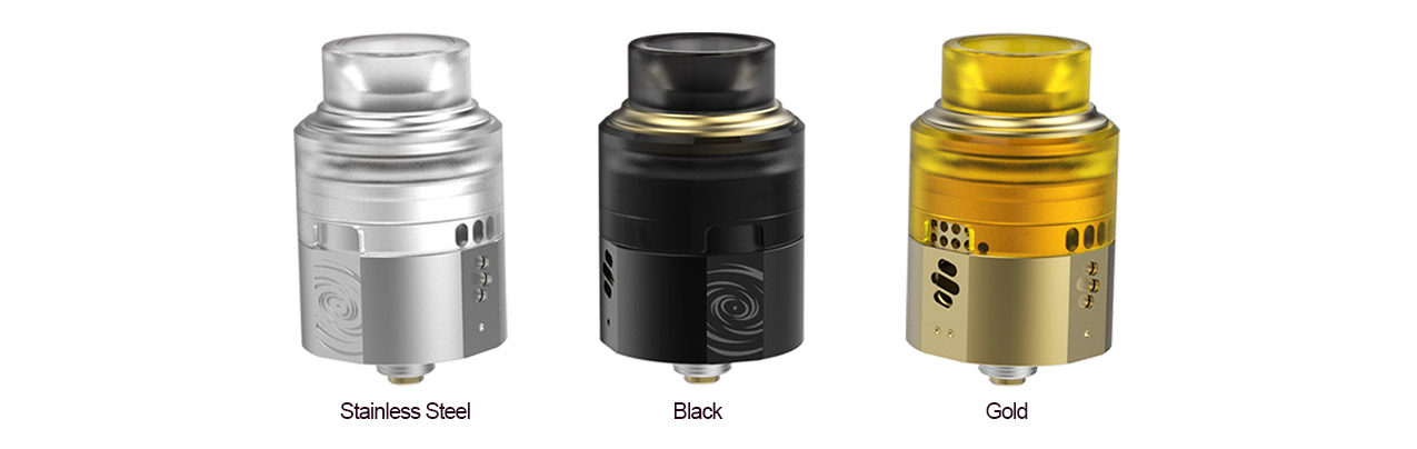 Advken Twirl RDA is a unique rebuildable drip atomizer with 24mm diameter with deep juice well for effective e-juice proof leakage. It mainly features the wide dual posts building deck with big hole design, which supports multiple types of coil building. The Advken Twirl RDA also adopts the inner chamber with an innovative slot design for easy installing. Plus the top airflow control and an extra BF pin, the Advken Twirl RDA is definitely an ideal vaping device for most squonk Mods.