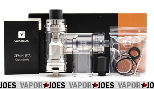 Has the Geekvape Griffin met its match? The Vaporesso Gemini RTA gives you the perfect airflow and the best flavor! Its velocity style deck makes building easier and ensures that your coils are in the optimal position, directly above the airflow, for maximum vapor and flavor production. The Gemini also implements a different style of top airflow as it travels down into the chamber to hit your coils and then back up, adding an extra level of cooling! Lastly, the key to making a great RTA is to include a top fill method, the Gemini’s top fill system makes filling a breeze! Whether you want to use this tank as a flavor chaser or a vapor chucking machine, it will exceed your expectations!