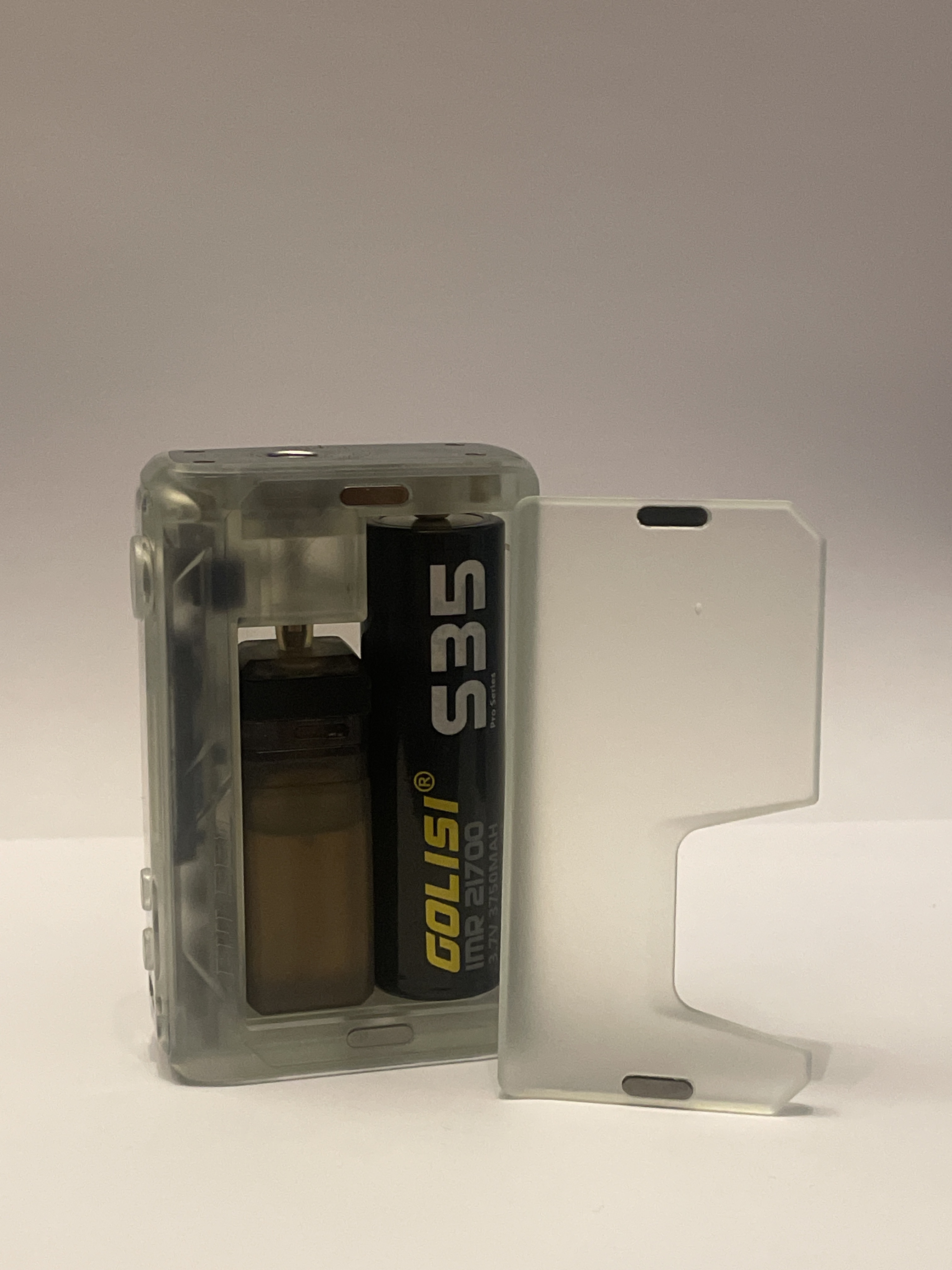 This in question is the 18650 adapter that I did not show previously. It comes with some branding and in a transparent color. It is usable to be able to use 18650 batteries instead of 21700, which are the ones originally used by this device to give it a long life.