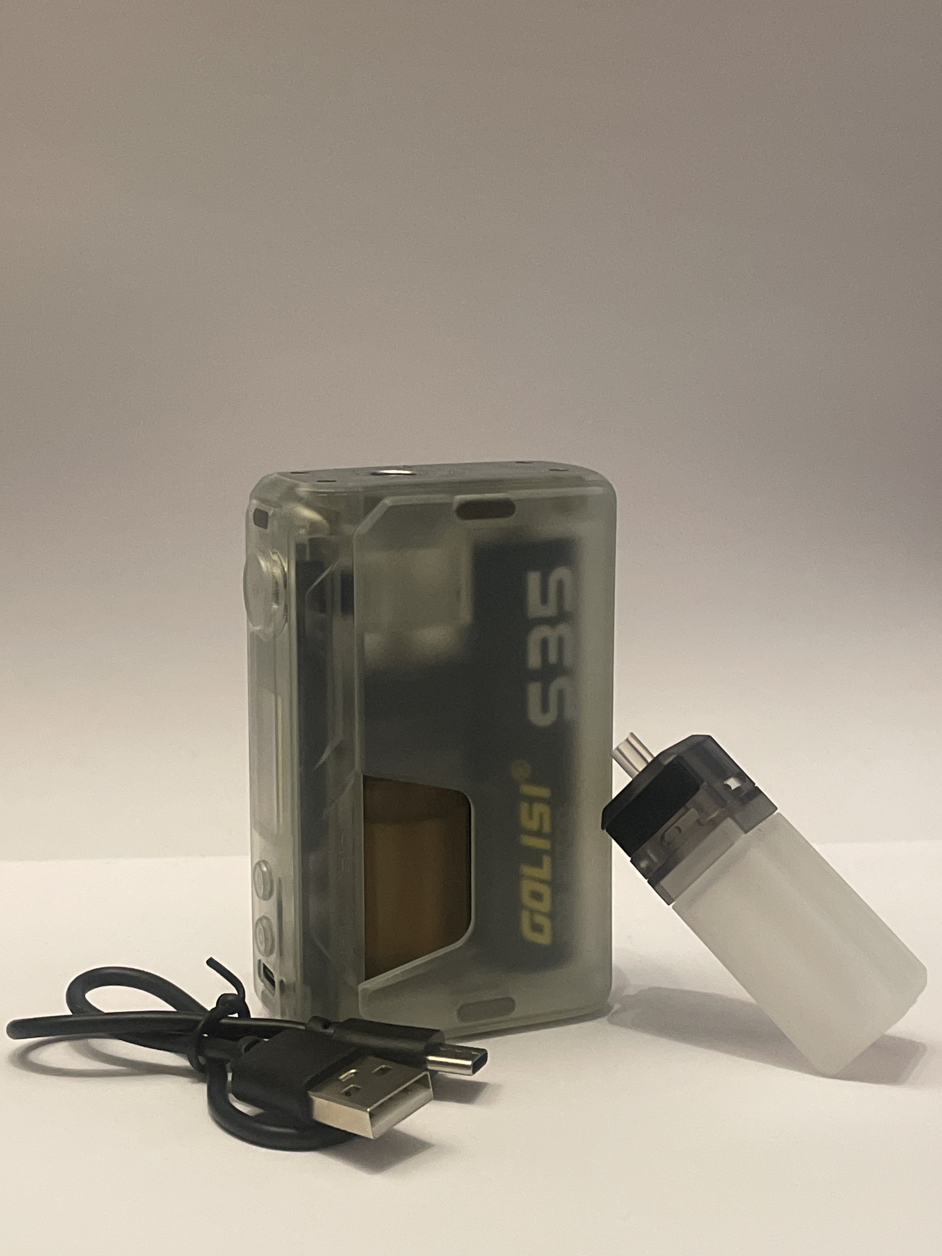 Once we sorted the contents we found the squonker mod, the spare bottle and the Type-C cable.