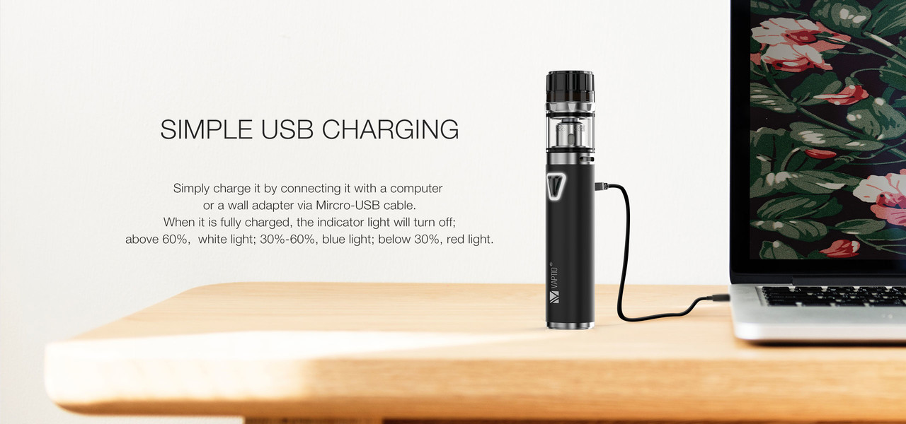 The device is the standard 5 clicks to turn on and 5 clicks to turn off, once on just press the fire button and vape. The device has battery status indication which is shown by the surround of the fire button lighting up in various colours, White indicates 61% to 100%, Blue 30% to 60% and Red below 30%. The light also flashes when one of the safety features kicks in which are, short circuit protection, low voltage protection, low and high resistance protection, overheat protection and over vape protection, the device also has a maximum output cap of 50W and auto shut down feature, so if you haven't vaped for 10 minutes the device turns off and will need to be turned back on with the usual 5 clicks.