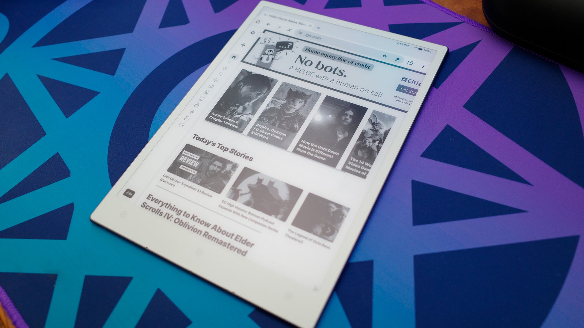The biggest issue I personally encountered, however, was ghosting. Because of the way the display technology works, all e-ink displays have some form of image retention when changing screens. It's not permanent like it is with OLED gaming monitors, but it can be distracting. While it's not terrible, it is definitely noticeable. More noticeable than I expected. Thankfully, you can easily refresh the screen by dragging down from the top left corner, which wipes these away.