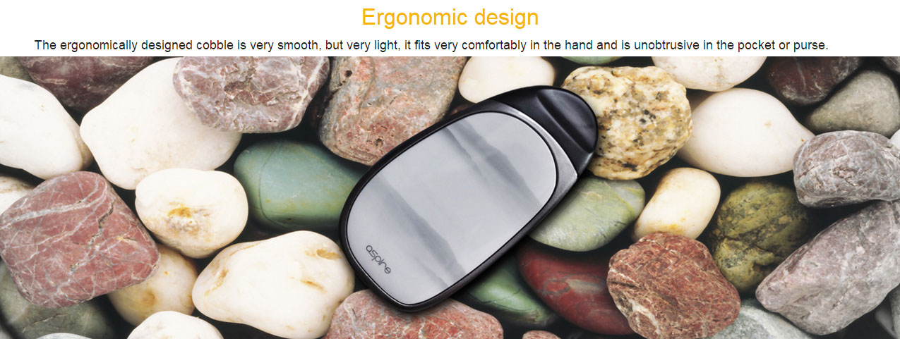 A great new AIO (All In One) device from Aspire, the Cobble, designed with comfort in mind and an easy filling method. Introducing the Cobble now with a new pod system. The ergonomic design pod system that holds 1.8 ml of e-liquid. The pod houses a non replaceable 1.4 ohm BVC type nichrome coil for efficient vaping ensuring you a flavorful vape. Aspire cobble pod system kit is an auto draw device, just inhale from the drip tip to vape. It comes in five stylish finishes, Dark marble, Carbon Fiber, Mountain Mist, Wood grain and Zebra Stripe.