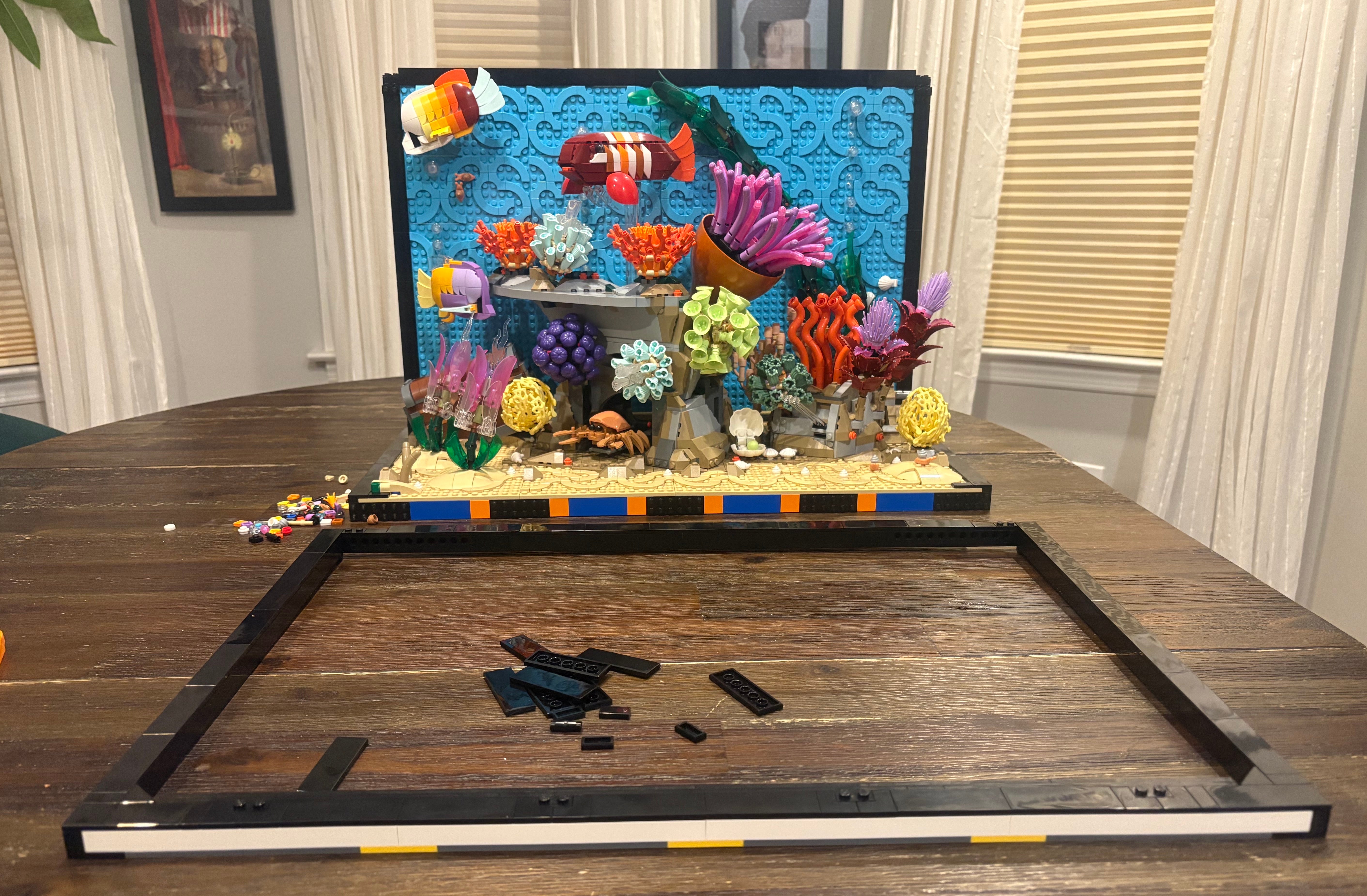 The LEGO Tropical Aquarium is a stress-free alternative to the real thing – for people who want the ambience but not the ongoing costs and labor that go into establishing a nitrogen cycle and minimizing algae growth, not to mention cleaning the tank itself.