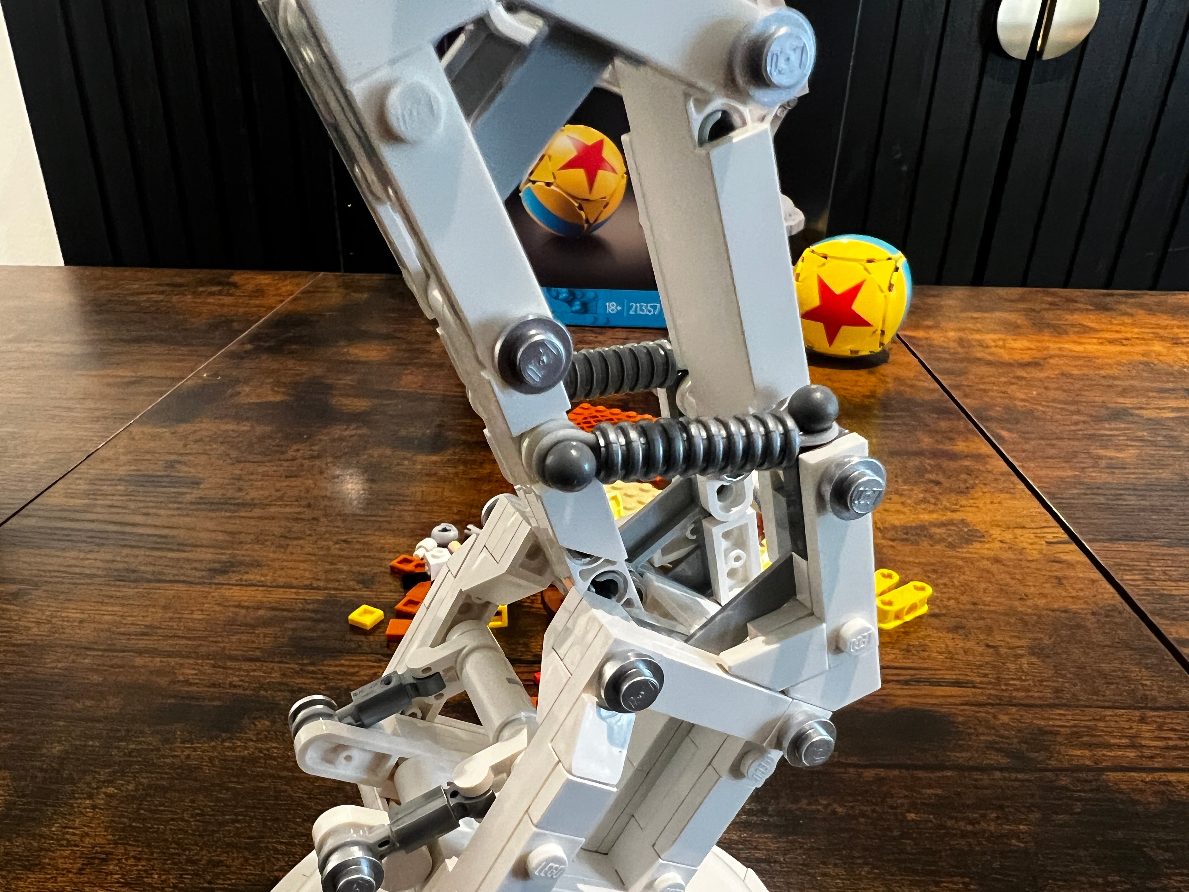 Despite its size and relatively low brick count (the entire set is made up of only 613 pieces), the Luxo, Jr. build was actually pretty intricate. The structure is an impressive combination of traditional brick connectivity and LEGO Technic design. There are even some rubber bands to give the lamp neck tension. This isn't the first time LEGO has used non-LEGO bricks as part of their builds, but it's fascinating to me every time a set uses something like this.