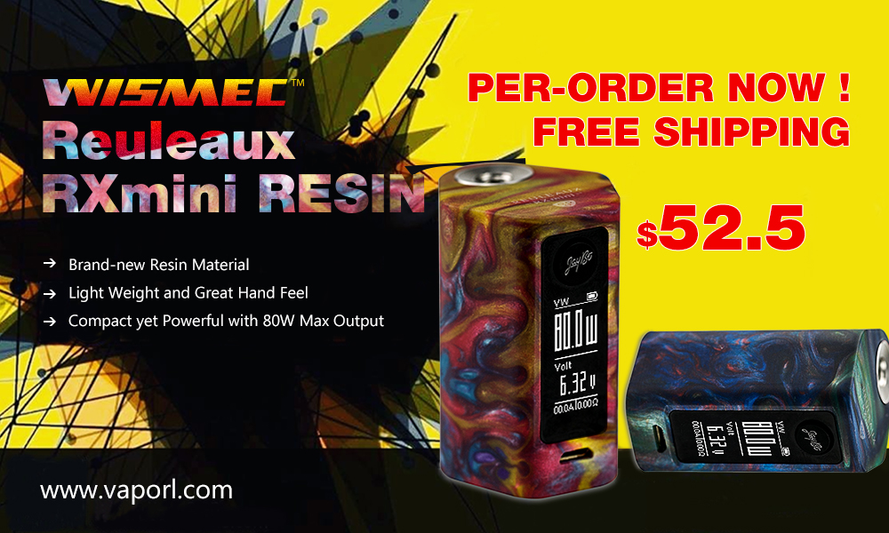 WISMEC Reuleaux RXmini 80W TC Mod Resin Edition by JayBo, features a 2100mAh built-in battery and max output 80W. The Rxmini box mod has compact size and unique psychedelic patterns.